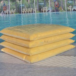 2、舉例說明:如一個1000立方的泳池要加入5KG的聚合氯化鋁,先用桶裝15KG的水,然后將聚合氯化鋁慢慢加入桶中,一邊加一邊攪拌,全部加入并攪拌均勻后,在桶中加入清水到150KG攪拌均勻便可灑入泳池中。