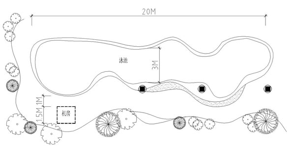 該泳池位于某高級(jí)住宅區(qū)的別墅庭院內(nèi),長(zhǎng)20米,寬3米,淺端水深1.3米,深端1.7米,平均水深1.5米。整個(gè)工程由泳池和一個(gè)全地下式簡(jiǎn)易機(jī)房組成,機(jī)房占地1.5*1.5米,高2.0米。設(shè)鋼爬梯上下,井口設(shè)不銹鋼蓋,方便開(kāi)啟,可以容納所需設(shè)備。