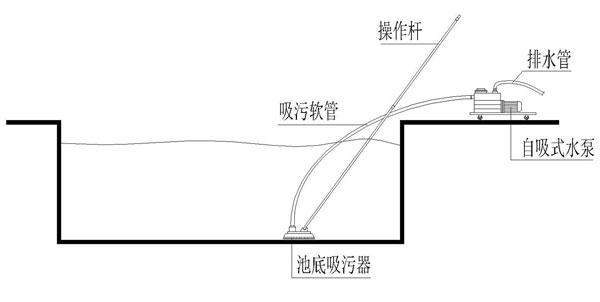 ⑤吸污采用吸污小推車,用池底吸污器吸污,操作簡(jiǎn)便,勞動(dòng)強(qiáng)度較低;