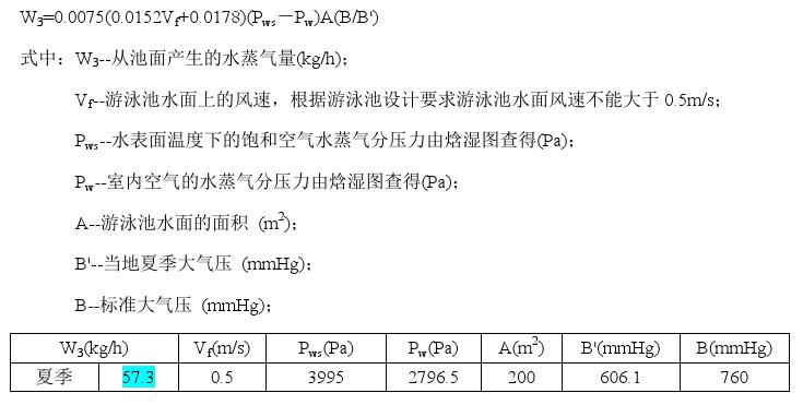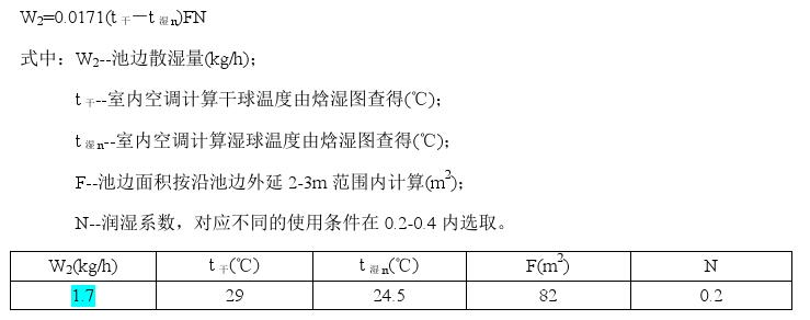 (3)泳池水面散濕量計算