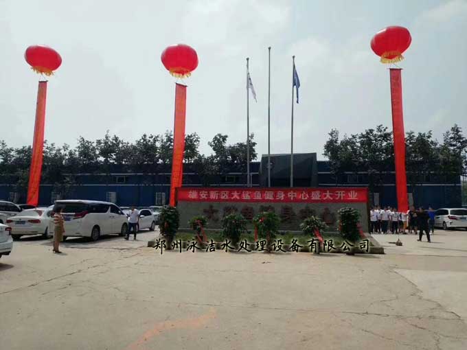 雄安新區(qū)(Xiongan New Area)位于中國河北省保定市境內(nèi),地處北京、天津、保定腹地,規(guī)劃范圍涵蓋河北省雄縣、容城、安新等3個(gè)小縣及周邊部分區(qū)域,我公司于2018年4月承建的大鯊魚健身會所歷時(shí)3個(gè)月投入使用,會所位于安新縣城內(nèi), 占地面積13000平方米。總體投資1個(gè)億,會所配備國際一線品牌健身器材,并由專業(yè)的私人教練隊(duì)伍全程跟蹤指導(dǎo),室內(nèi)配備恒溫游泳館,全部由鄭州泳潔水處理設(shè)備有限公司承建。其中過濾設(shè)備采用中南海專用曝氣呼吸精濾系統(tǒng),為泳潔專利技術(shù),水質(zhì)活化、鮮化,流水永遠(yuǎn)不腐。由于水的潔凈度很高,有一種天然的藍(lán)色,自然透明。加熱系統(tǒng)采用英國進(jìn)口品牌,水溫水質(zhì)均遠(yuǎn)遠(yuǎn)高于國標(biāo)。泳潔泳池重力式水處理過濾器是以靠水位的高度差進(jìn)行過濾,水泵揚(yáng)程6-8米,原水進(jìn)入設(shè)備后先水流細(xì)分進(jìn)行曝氣,增加水體溶解氧含量,使水活化、鮮化,然后自上而下的過濾。濾料采用七層反復(fù)合天然礦石精制而成,在不投加任何絮凝劑、混凝劑、助凝劑情況下,可以有效截留原水中懸浮物和有害物質(zhì),濾后水質(zhì)經(jīng)檢測小于1NTU。在重力的作用下巧妙利用虹吸原理實(shí)現(xiàn)了自動反洗自動過濾的功能,真正成為了高效節(jié)能的水力自動化水處理過濾設(shè)備。