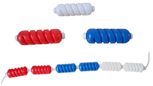本泳道線適合各種一般的比賽或訓練,一般由白色圓形浮子將紅色,藍色,黃色的風車型的浮子間隔排列。即美觀,又顯眼。浮子的材質是由高密度低壓聚乙烯制成,質量保證,風扇葉狀的浮子助于消波,具有很好的防浪效果。